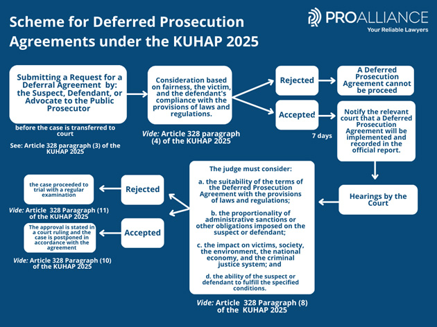 However, if the obligations in the agreement are not fulfilled, the Public Prosecutor may continue the prosecution without requiring additional approval. Each agreement is officially recorded and submitted to the judge to be recorded in the minutes. Violations of the agreement procedure may result in legal nullity and become the basis for the suspect or defendant to file an objection or resistance. With the introduction of the DPA, the 2025 Criminal Procedure Code presents a new solution in the enforcement of corporate criminal law that is oriented towards recovery, compliance, and the prevention of repeat offenses. The following is an outline of the Prosecution Agreement as stipulated in the 2025 Criminal Procedure Code: